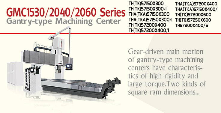 Gear-driven main motion of gantry-type machining centers have characteristics of high rigidity and large torque. Fixed bridge provides good stiffness. Two kinds of square ram dimensions are used for standard supply i.e. square ram with section area of 350×350mm and that of 420×470mm. The ram is intergrated into headstock with long travel guiding inside, its motion has been balanced all the time under help of hydraulic oil cylinder to obtain small kinetic inertia, flexiable movement and good stability. The spindle head is designed available for matching with vertical and horizontal spindle, among which the horizontal one can realize 5°×72 rotation. Both the vertical spindle and the horizontal spindle have functions of auto tool changing, as well as five-side performance. Machines of this series are ideal equipments for processing key work-pieces such as machine bed, column, box and for work-pieces with higher accuracy as well.